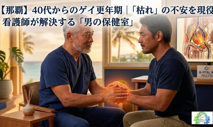 「最近、夜の反応が鈍くなってきた…」 「若い頃のようなバイタリティが湧かない」 そんな悩みを、一人で抱え込んでいませんか? 那覇市で「男の保健室」を営む 現役看護師の渋谷です。 ゲイコミュニティにおいて40代、50代、60代と年齢を重ねることは身体...